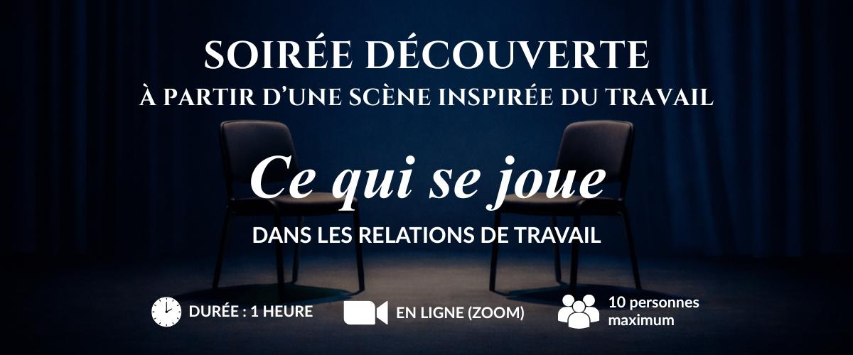 Chaque mois, je propose une soirée découverte pour explorer ce qui se joue dans la relation au travail.